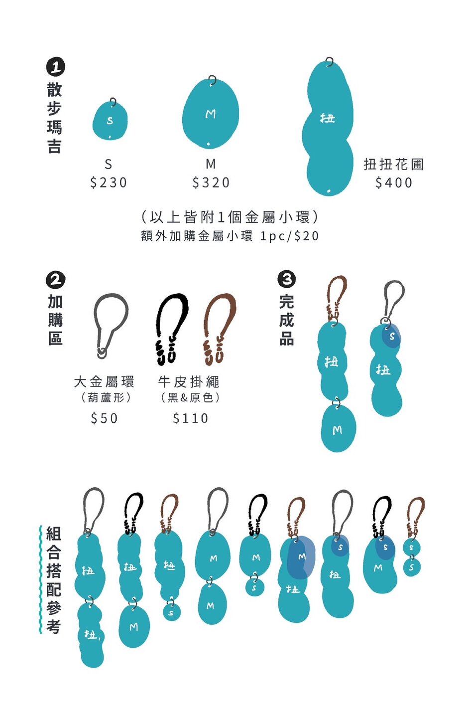 ▸  可另外加購 牛皮掛繩   或  葫蘆形大金屬環