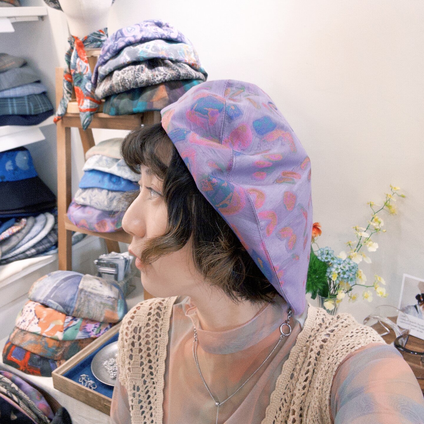 ‧ 小平頂貝蕾帽 尺寸:頭圍 57 cm 以下/外觀形狀較小