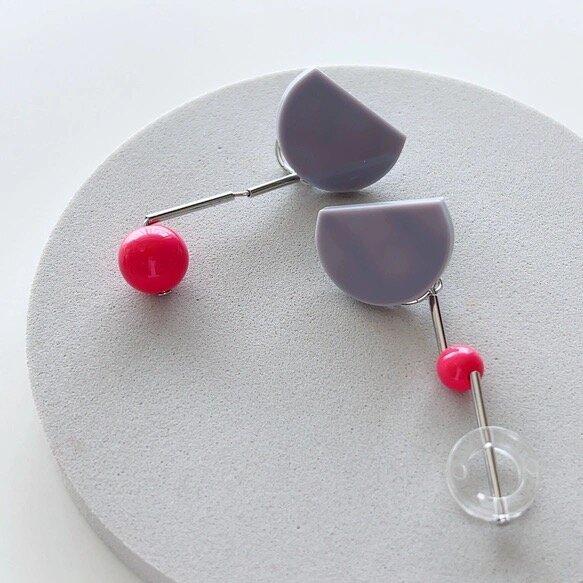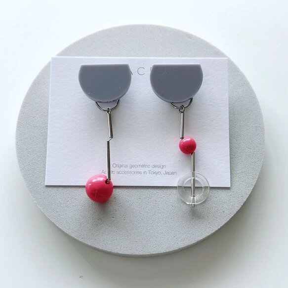 MACRO|[針式耳環] 耳環/E59-GY/灰色半圓/針式